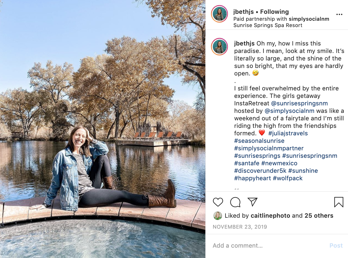 You can now ask your influencers to use a specialized partner hashtag. For instance, we use #simplysocialnmpartner. This has now become the “official” hashtag disclosure for the partnership. It is also a great way to keep all of the posts that your influencers in one collection and can be used as an online reference to for potential clients and/or influencers with whom you’d like to work with.
